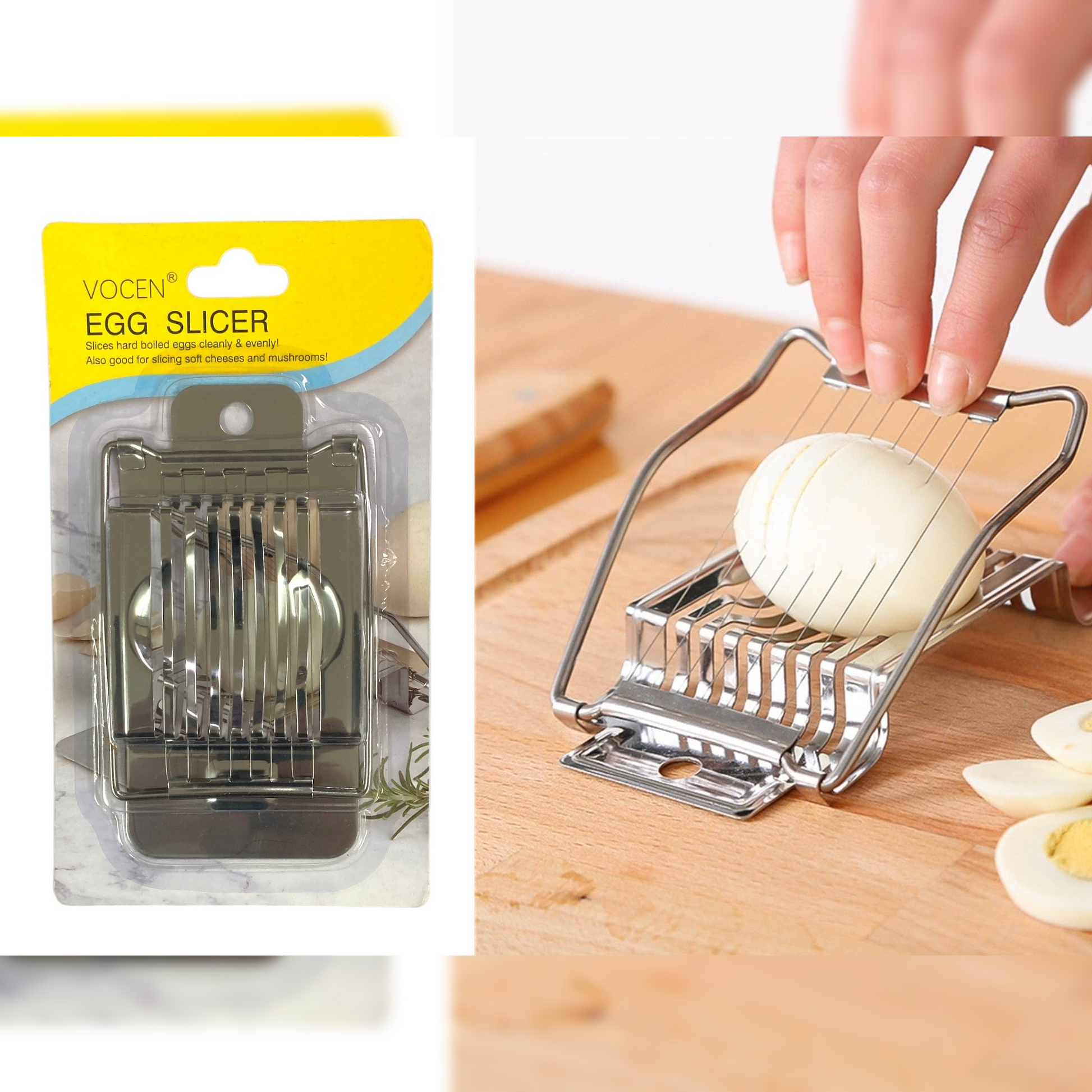 Cuts boiled eggs easily, but also good for slicing soft mushroom and soft cheese